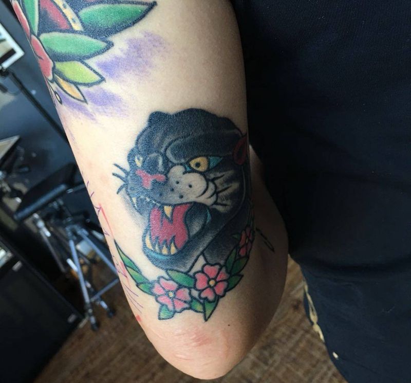 当前位置: 首页 >内蒙古呼和浩特市纹身店-點墨刺青纹身图案>豹子纹身图片_成品手臂欧美动物纹身图案