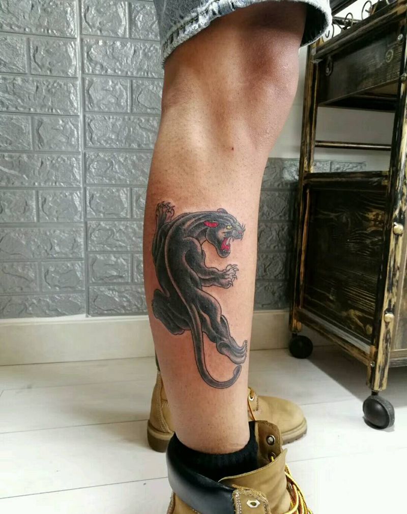school 豹子纹身图片_腿部Old School纹身图案