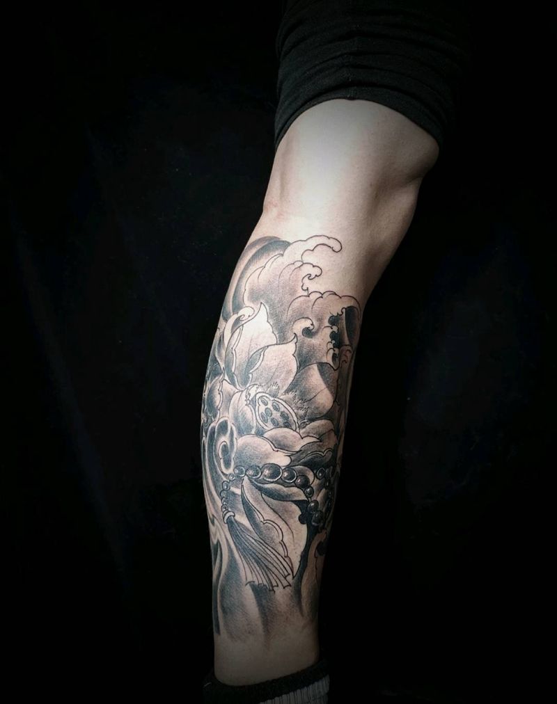 传统鲤鱼包小腿纹身图片_腿部新传统纹身图案