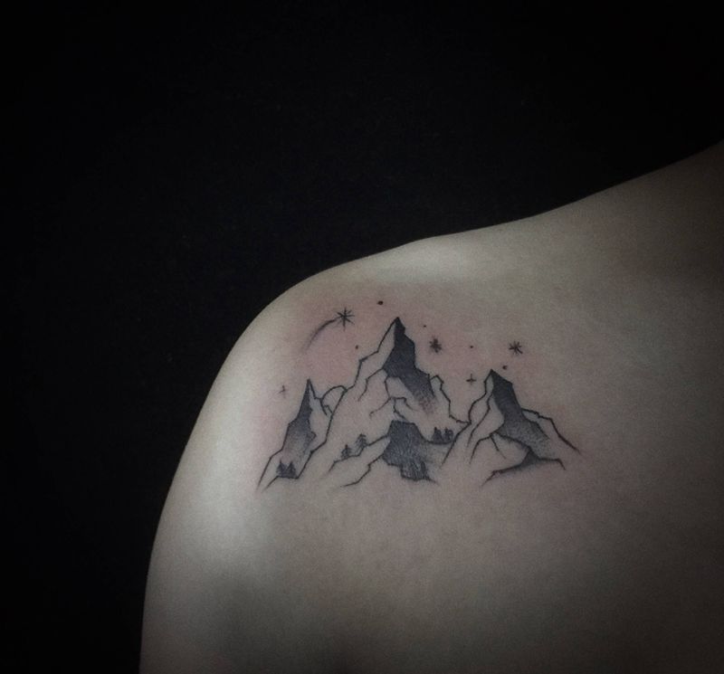 情侣纹身纹身图片_肩部水墨点刺纹身图案