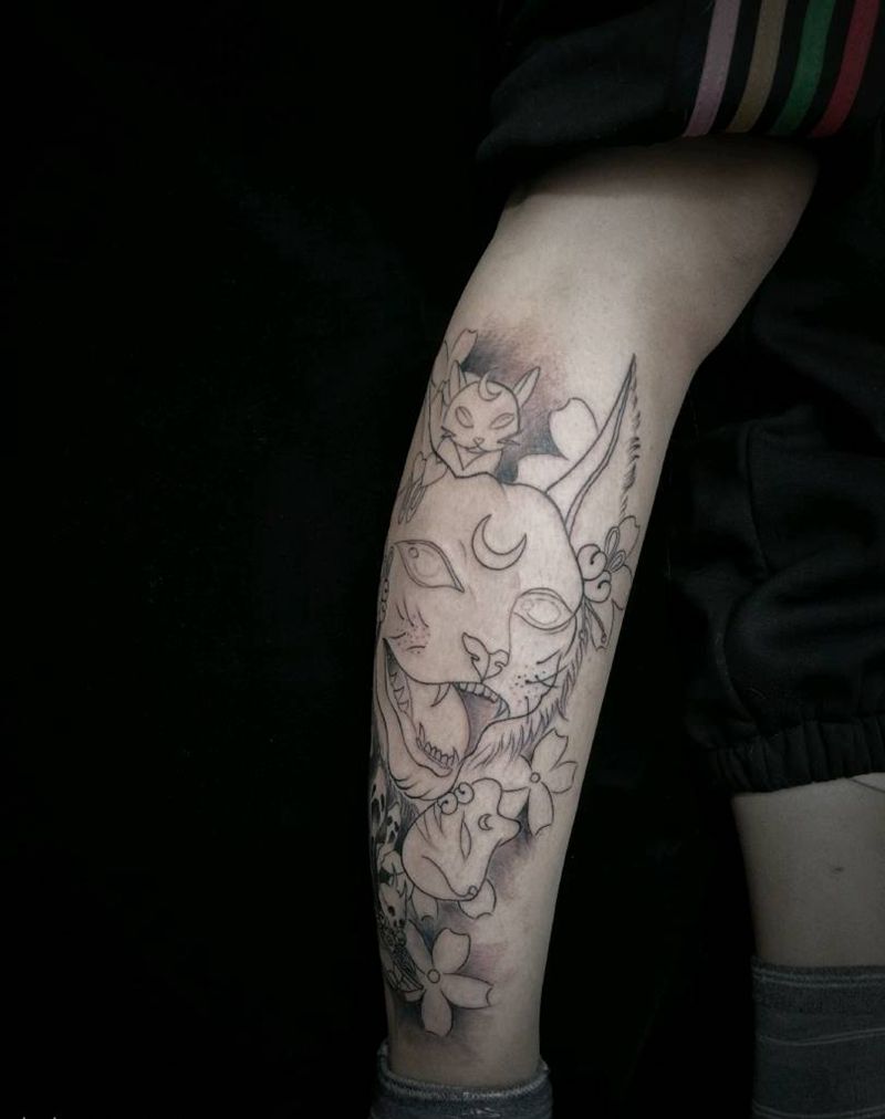 school猫纹身图片_腿部手臂New School水彩遮盖 猫纹身图案