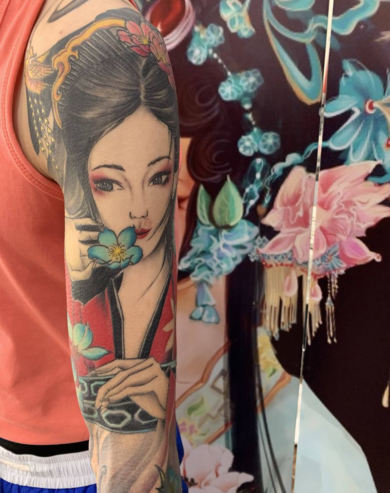 当前位置: 首页 >内蒙古包头市纹身店-森威刺青纹身图案>艺伎花臂纹身图片_手臂新传统纹身图案