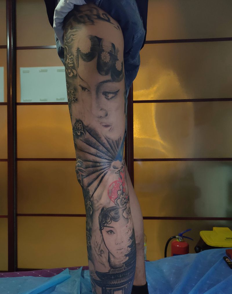 当前位置: 首页 >内蒙古呼和浩特市纹身店-守义阁刺青工作室纹身图案>花腿纹身图片_腿部老传统纹身图案