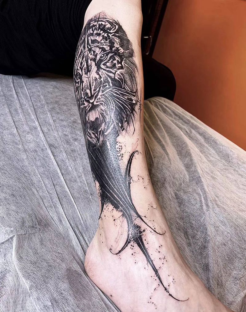 • T网红王老大花腿龙纹身图片_腿部新传统纹身图案