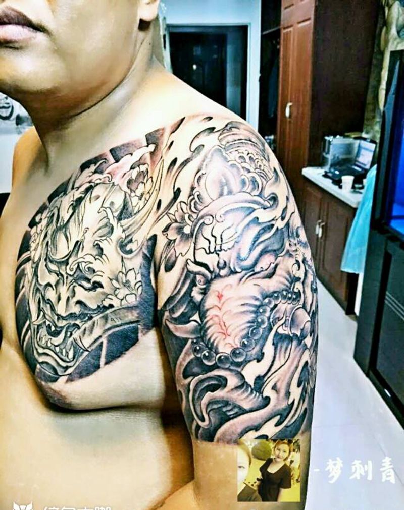 • 纹身吧推荐的披肩图腾半胛纹身图案作品展示