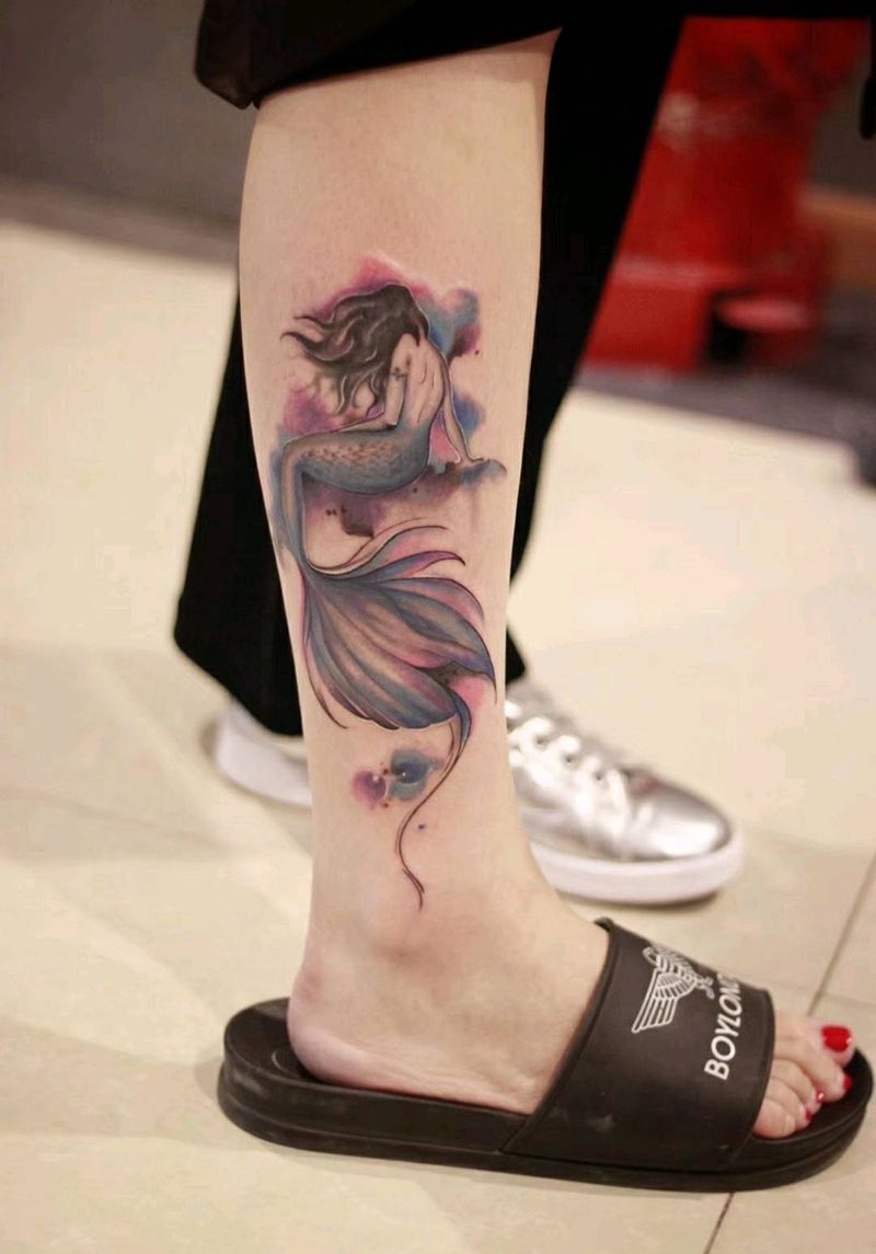 • T网红王老大花腿龙纹身图片_腿部新传统纹身图案