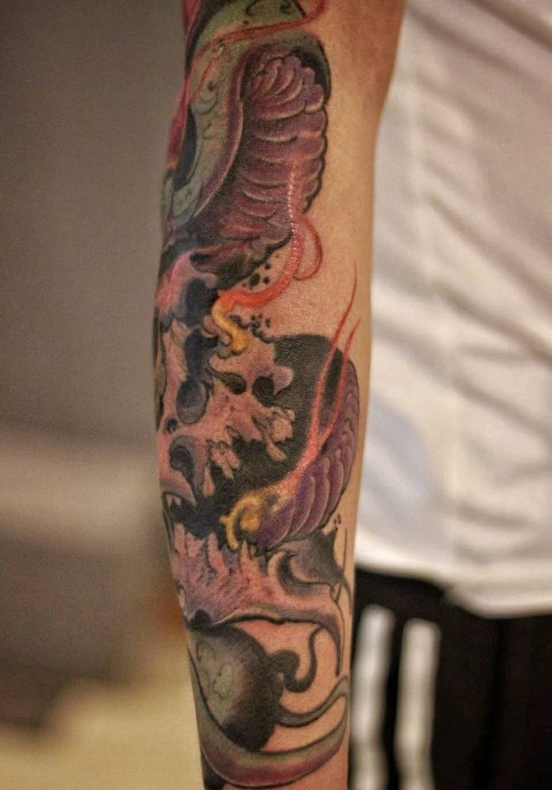 • T网红王老大花腿龙纹身图片_腿部新传统纹身图案