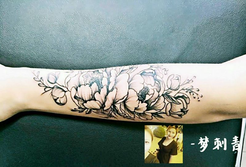 小臂花纹身图片_手臂传统写实植物纹身图案