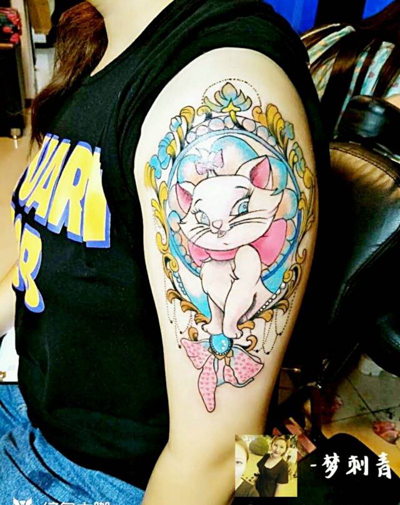 当前位置: 首页 >内蒙古呼和浩特市纹身店-守义阁刺青工作室纹身图案>女神最爱纹身图片_肩部手臂欧美肖像清新写实动物成品纹身图案