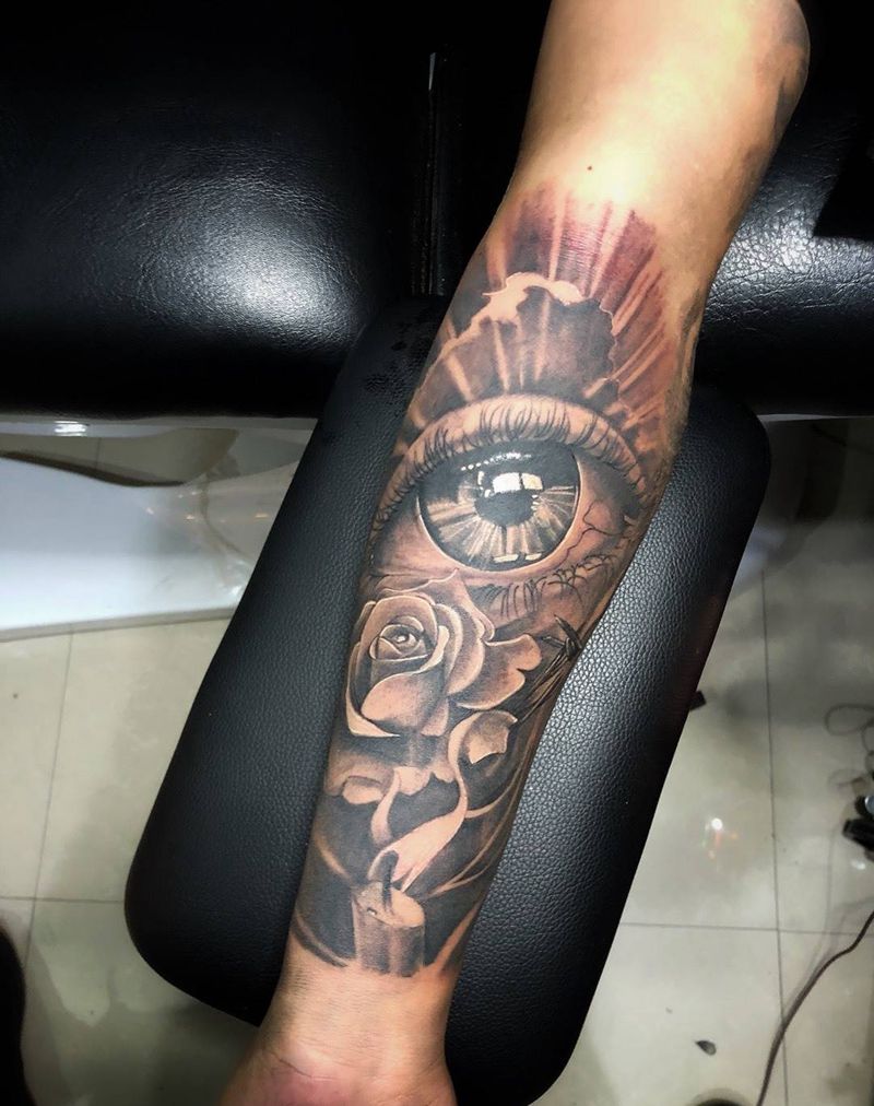 • 手背潮流时尚的玫瑰花眼睛纹身图案