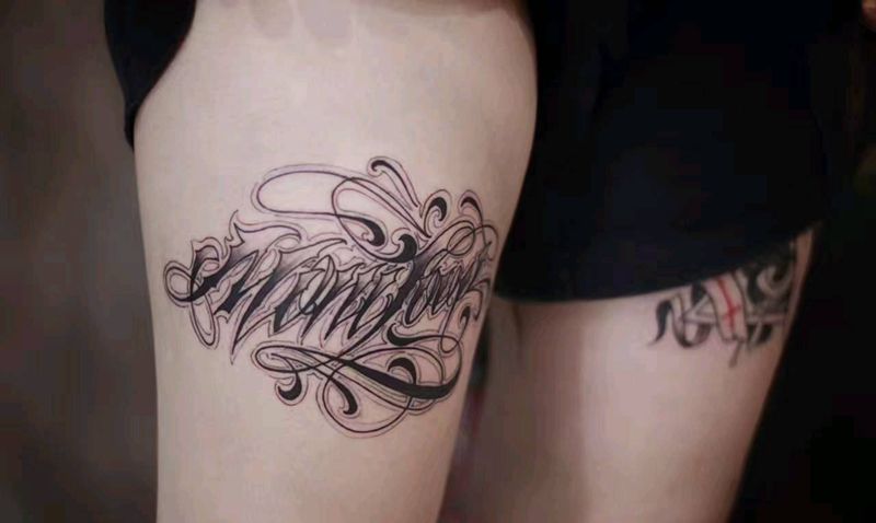当前位置: 首页 >内蒙古包头市纹身店-金雕刺青Tattoostudio纹身图案>西海岸花体纹身图片_腿部欧美几何字符图腾原创成品纹身图案