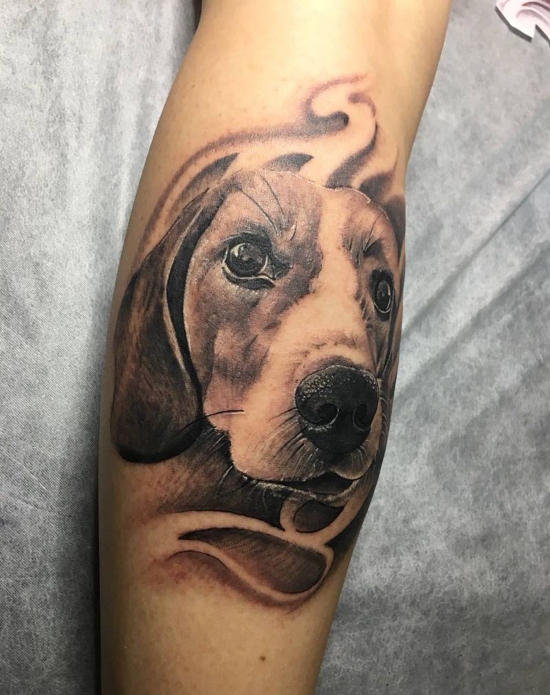 萌宠纹身图片_成品腿部写实动物纹身图案