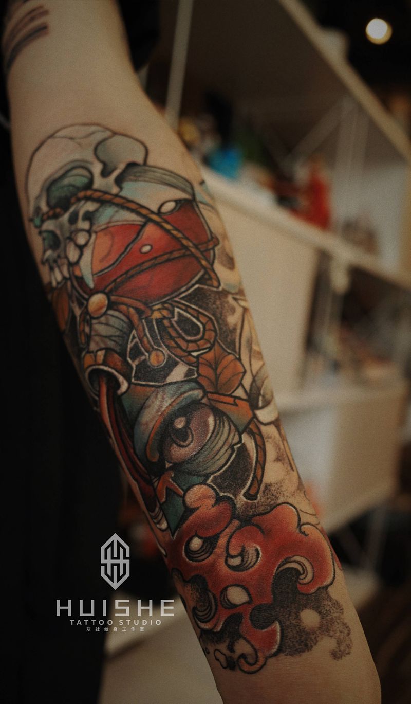当前位置: 首页 >内蒙古呼和浩特市纹身店-灰社纹身工作室纹身图案>天秤座♎️水瓶座♒️纹身图片_手臂New School纹身图案