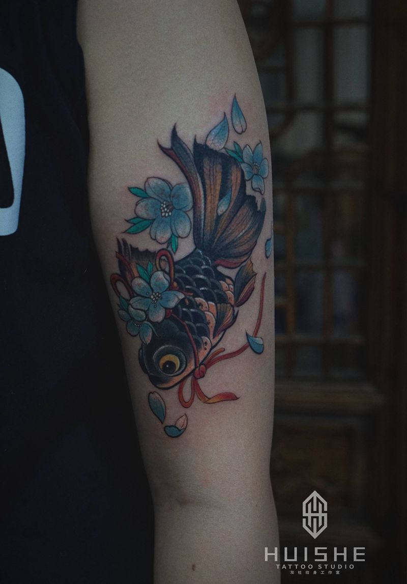 当前位置: 首页 >内蒙古呼和浩特市纹身店-灰社纹身工作室纹身图案>日式小金鱼纹身图片_手臂New School纹身图案