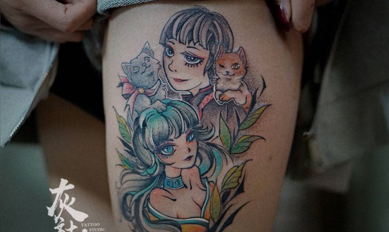 当前位置: 首页 >内蒙古呼和浩特市纹身店-灰社纹身工作室纹身图案>家人纹身图片_腿部New School家人纹身图案