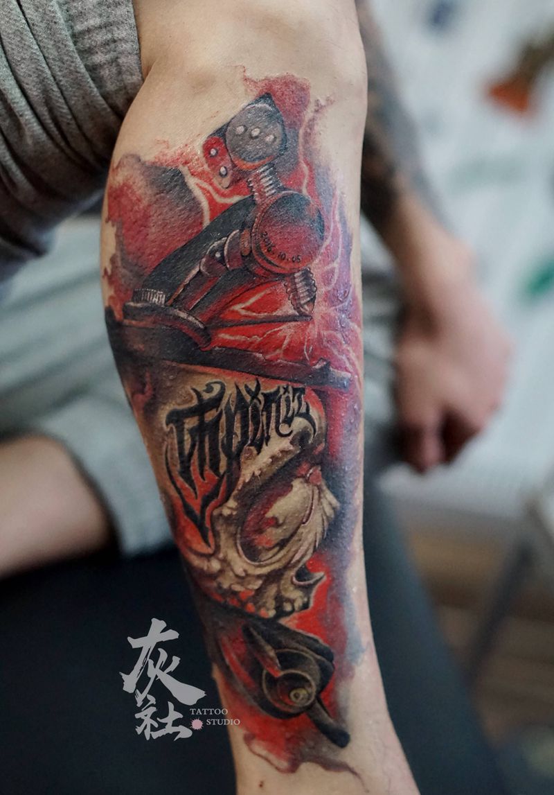 当前位置: 首页 >内蒙古呼和浩特市纹身店-灰社纹身工作室纹身图案>纹身机纹身图片_腿部New School机纹身图案