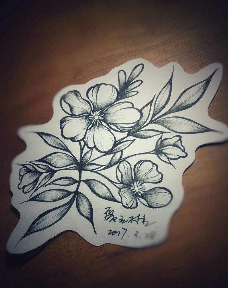 当前位置: 首页 >内蒙古呼和浩特市纹身店-灰社纹身工作室纹身图案>白描花卉纹身图片
