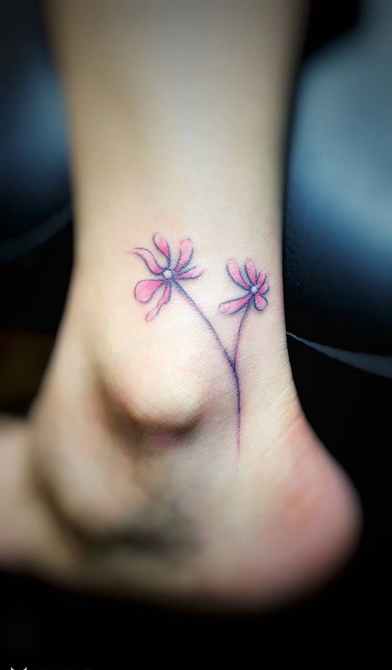 脚踝小花纹身图片