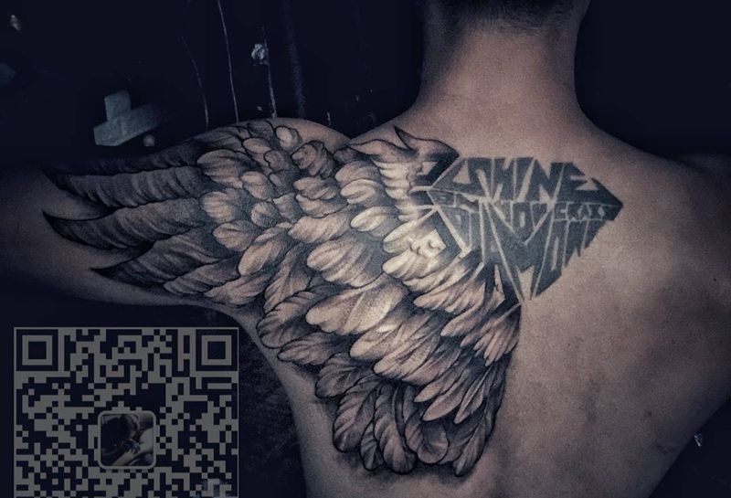 当前位置: 首页 >内蒙古呼和浩特市纹身店-灰社纹身工作室纹身图案>手绘过肩翅膀纹身图片