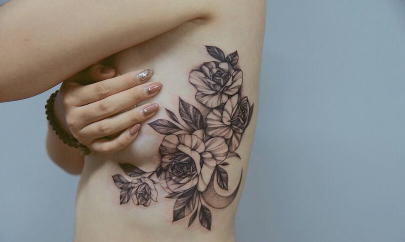 • 女性大花胸纹身_43张霸气漂亮的女性大花胸纹身图案作品