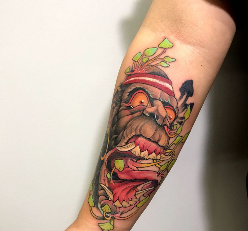 当前位置: 首页 >内蒙古包头市纹身店-超凡刺青纹身图案>暴躁的猴子纹身图片_手臂New School猴子纹身图案