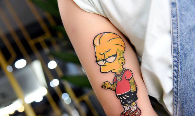 当前位置: 首页 >内蒙古包头市纹身店-超凡刺青纹身图案>社会辛普森纹身图片_手臂New School纹身图案