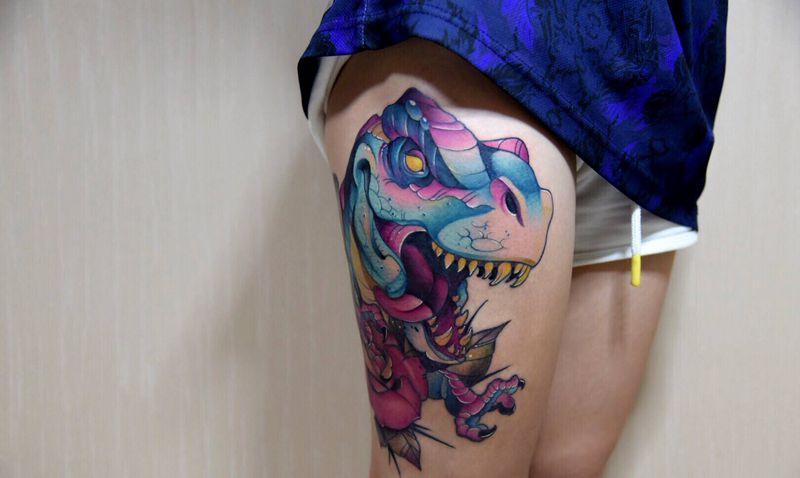 2018年参赛作品恐龙纹身图片_腿部New School纹身图案