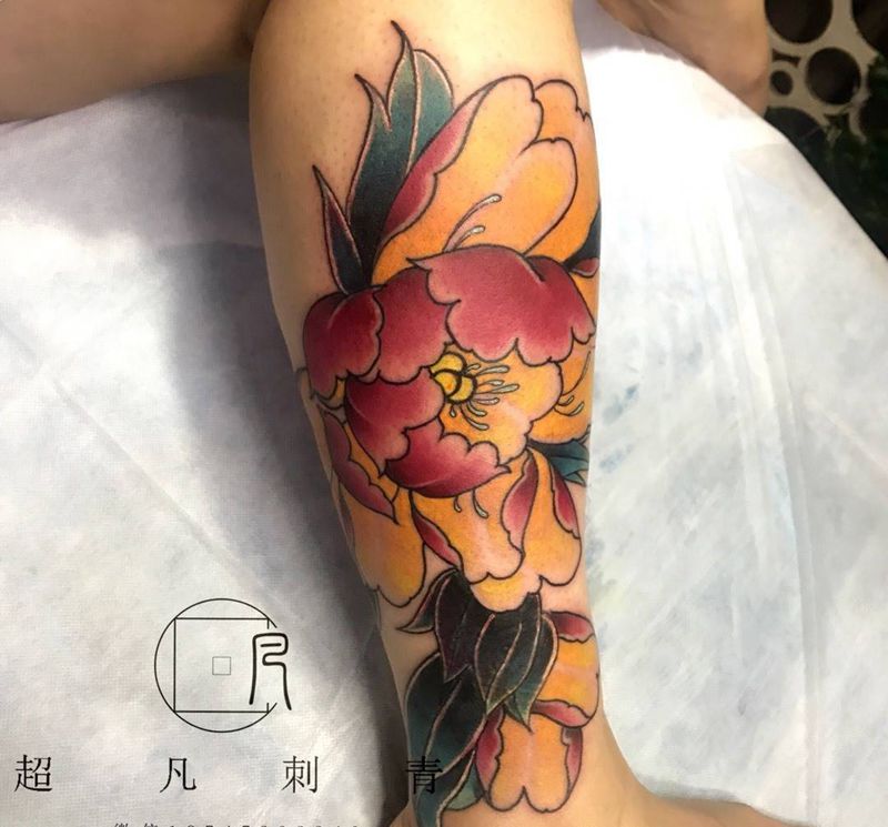 • T网红王老大花腿龙纹身图片_腿部新传统纹身图案