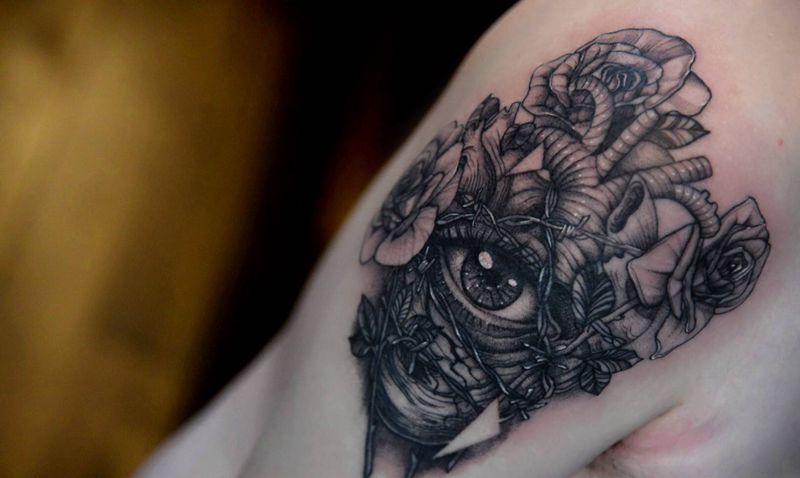 上帝之眼遮盖纹身图片_手臂点刺纹身图案