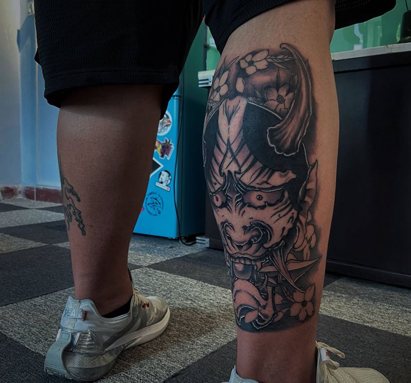 当前位置: 首页 >内蒙古包头市纹身店-AK刺青纹身图案>般若遮盖纹身图片_腿部新传统纹身图案