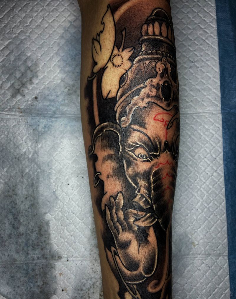 当前位置: 首页 >内蒙古包头市纹身店-AK刺青纹身图案>象神纹身图片_手臂新传统纹身图案
