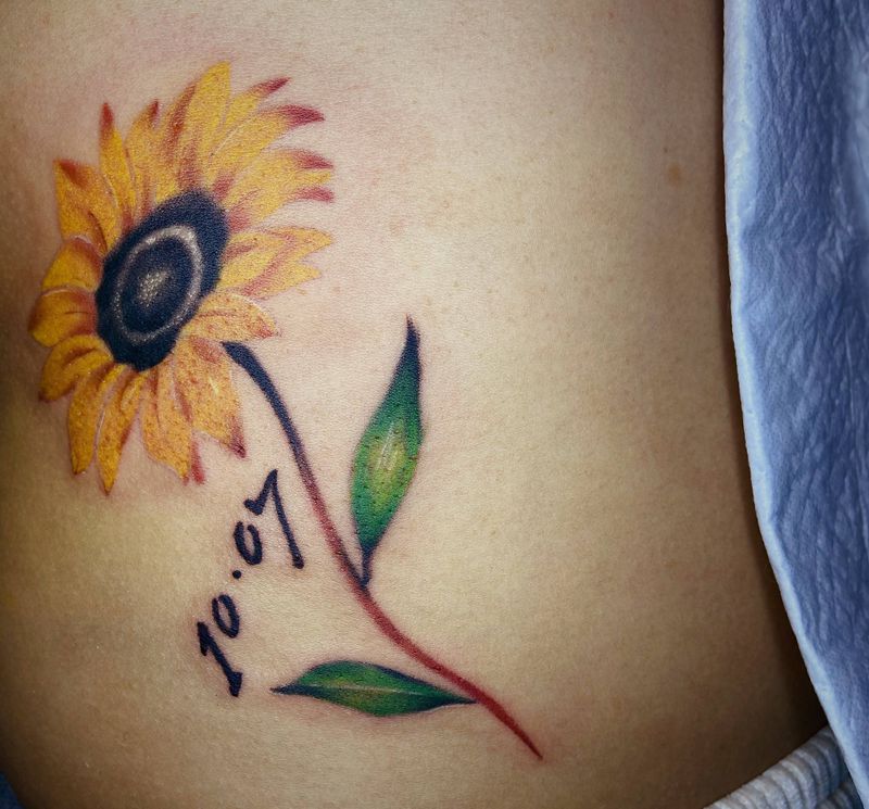 向日葵纹身图片_腹部欧美写实纹身图案