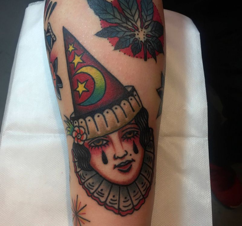 • T包小腿吹火男+阿多福纹身图片_腿部老传统新传统吹火男阿