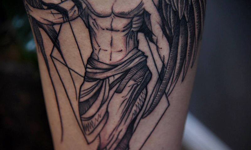 当前位置: 首页 >内蒙古包头市纹身店-超凡刺青纹身图案>折翼天使纹身图片_腿部点刺几何纹身图案