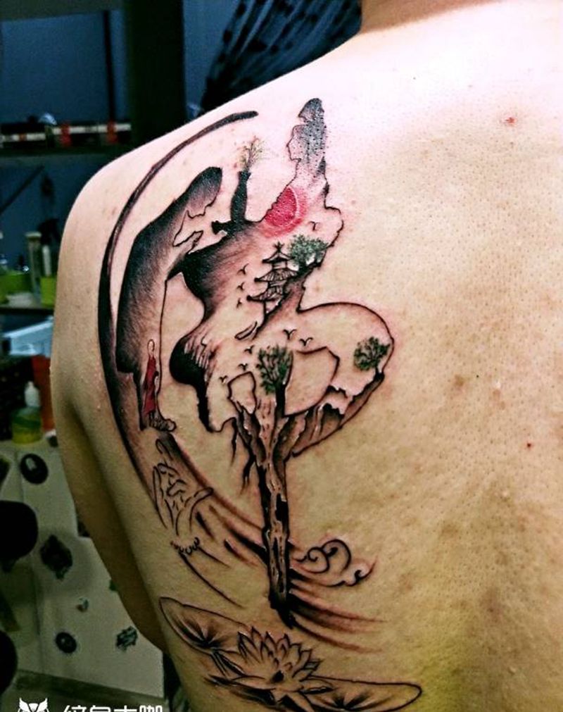 当前位置: 首页 >内蒙古包头市纹身店-AK刺青纹身图案>佛字纹身图片_肩部背部传统国画人物原创成品纹身图案