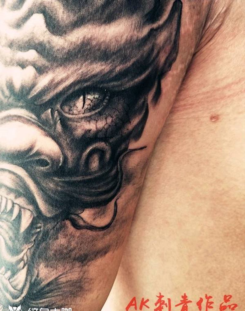 AK刺青 神龙完成纹身图片_肩部传统写实动物宗教成品纹身图案
