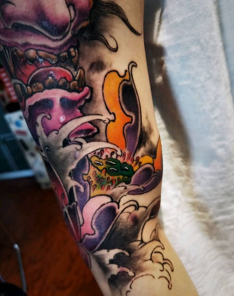 • T网红王老大花腿龙纹身图片_腿部新传统纹身图案