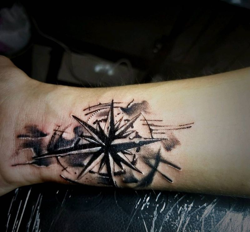 遮盖纹身图片_手臂欧美写实指南针纹身图案