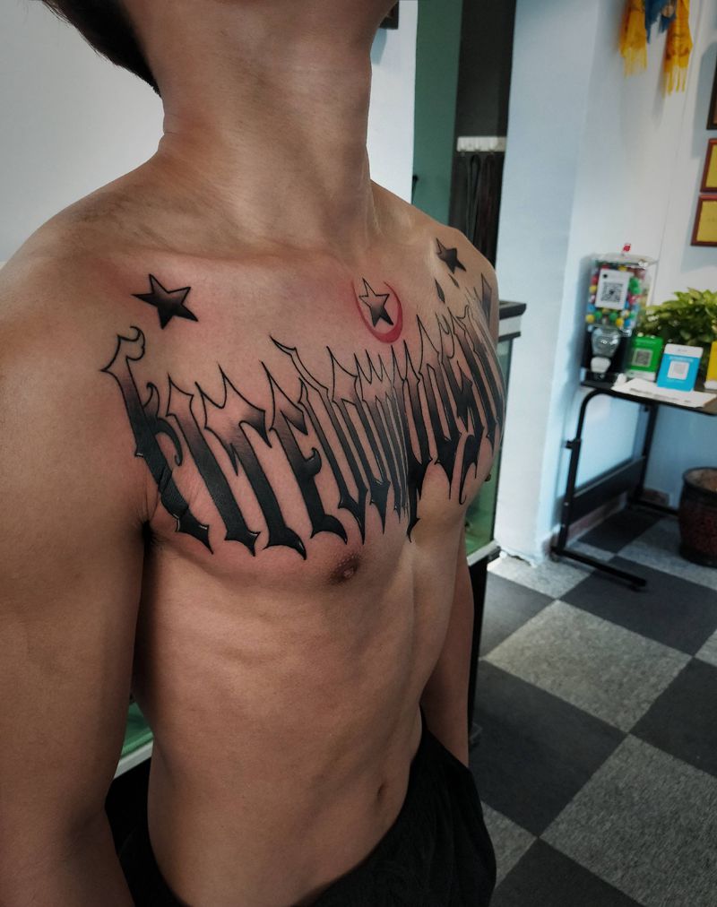 原创花体字纹身图片_胸部花体字纹身图案