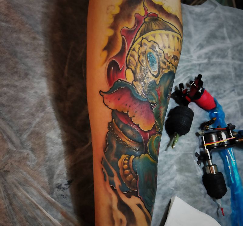 当前位置: 首页 >内蒙古包头市纹身店-AK刺青纹身图案>象神纹身图片_手臂新传统纹身图案