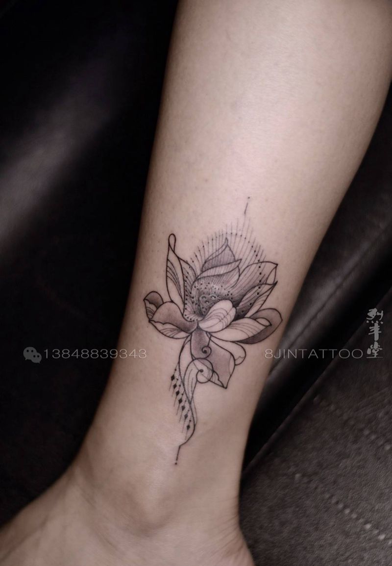 当前位置: 首页 >内蒙古包头市纹身店-烈丰堂刺青纹身图案>线条莲花纹身图片_成品腿部清新植物图腾脚部几何纹身图案