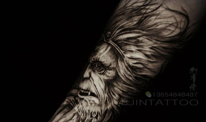 当前位置: 首页 >内蒙古包头市纹身店-烈丰堂刺青纹身图案>妖猴纹身图片_手稿手臂传统写实鬼神孙悟空纹身图案