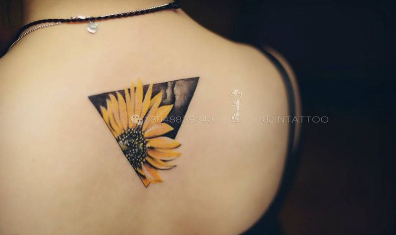 向阳花纹身图片_插画肩部背部颈部清新植物纹身图案