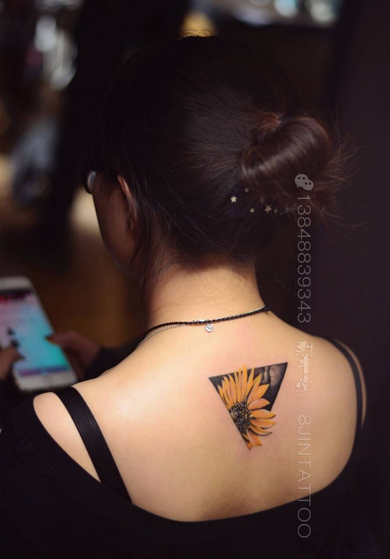 向阳花纹身图片_插画肩部背部颈部清新植物纹身图案