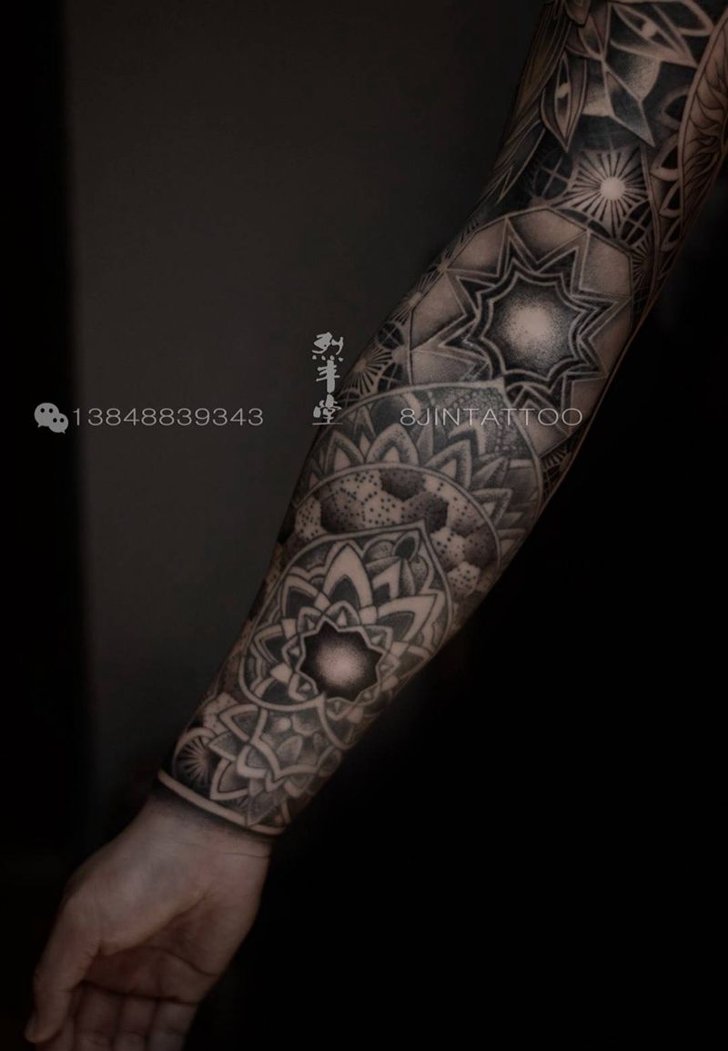 点刺花臂纹身图片_手稿手臂肩部胸部欧美原创点刺纹身图案