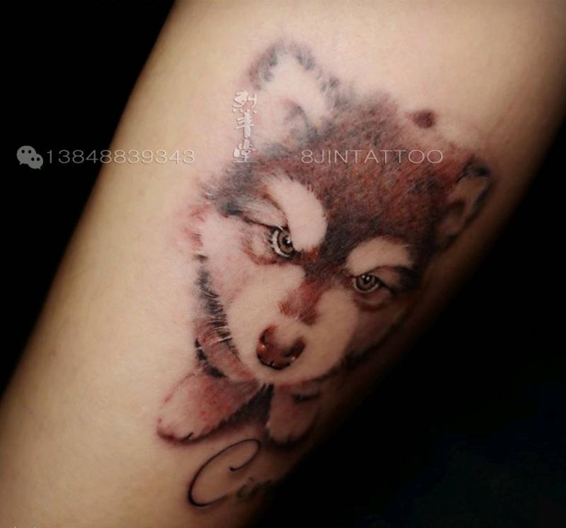 当前位置: 首页 >内蒙古包头市纹身店-烈丰堂刺青纹身图案>爱宠阿拉斯加纹身图片_腿部欧美写实动物宠物插画纹身图案