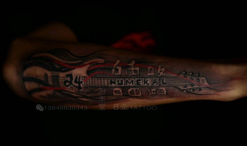 当前位置: 首页 >内蒙古包头市纹身店-烈丰堂刺青纹身图案>留念纹身图片_手臂欧美写实原创吉他乐队插画纹身图案