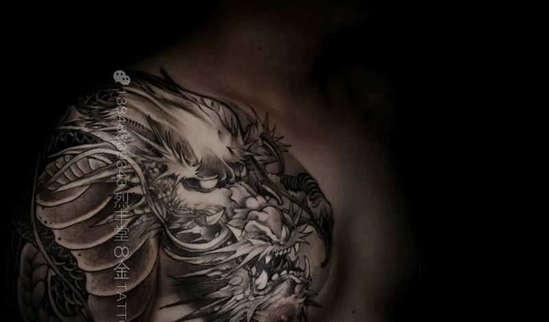 黑灰满背纹身图案