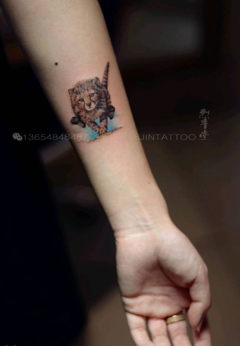 当前位置: 首页 >内蒙古包头市纹身店-烈丰堂刺青纹身图案>小豹子纹身纹身图片_手臂欧美写实豹子小清新纹身图案