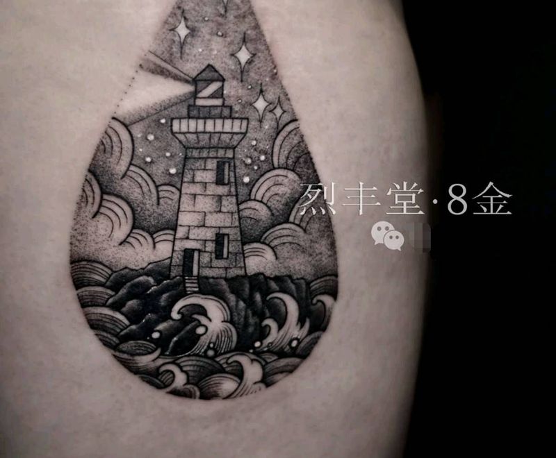 滴纹身图片_腿部几何欧美写实遮盖纹身图案